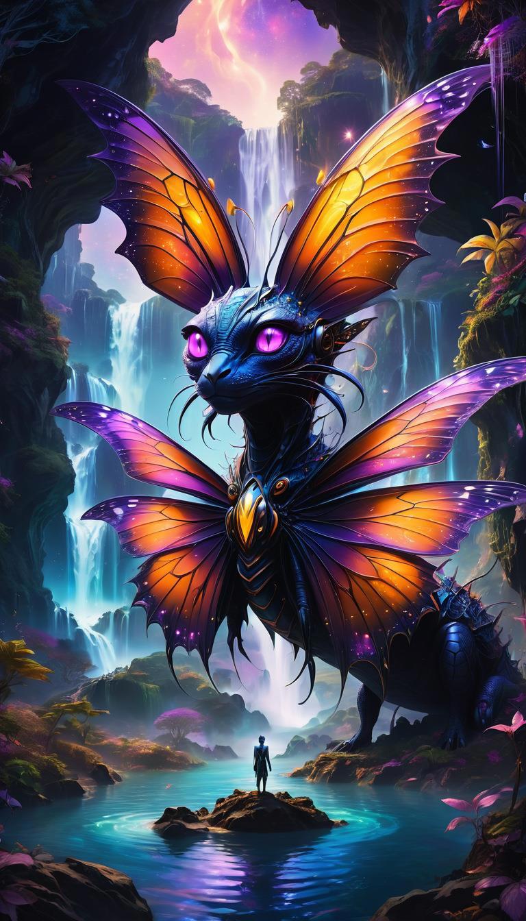 Нормадду был духом пространственной магии, по виду своему подобным черно-оранжевому дракону, с множеством фиолетовых глаз.