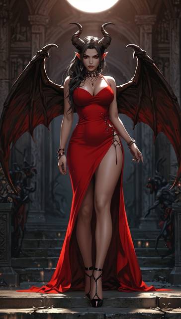 Красная кожа, горящие, алые глаза, острые рога – так выглядело лицо, которое Грезильда увидела перед собой. Оно выражало гнев. Аль Гамон был одет в тяжёлую, черно-алую броню, из наплечников торчали острые, покрытые ядом шипы. Рядом с троном стояла обворожительная девушка в бордовом платье, напоминающее кровь. Оно словно струилось и перетекало по красавице, при этом периодически обнажая её соблазнительные ноги, ягодицы, грудь, спину и плечи. Длинные, рыже-каштановые волосы были слегка взлохмачены, скорее придавая шарма, чем, говоря о небрежности хозяйки. На её голове росли витиеватые рога, за спиной были сложены кожистые крылья, словно у летучей мыши. Она соблазнительно улыбнулась, облизнула губы и причмокнула. Суккуб по имени Иль Ширилл. Грезильда знала это существо. Первая помощница её хозяина.