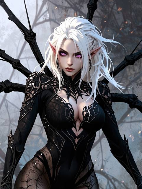 Грезильда почувствовала, что её тело меняется. Кожа растягивается, бледнеет, а кости ломаются и срастаются заново, меняя свою структуру, плотность и направление. Она почувствовала, как позвоночник ломается на несколько частей, а затем эти отростки начинают расти, пробивая её мышцы, а затем и кожу. Краем глаза ведьма увидела, что за её спиной выросли восемь продолговатых конечностей, покрытые хитином и волосками. Женщину повергло в ужас осознание того, что из неё позвоночника только что выросли паучьи лапы. Неосознанно она подумала о том, чтобы согнуть одну из них и конечность тут же послушалась. Эльфийская красота исказилась, а цвет глаз излучал фиолетовое свечение. Белое платье полностью разорвалось, но на её теле выросла шкура паука, укрывая голую грудь и сделав наросты, напоминающие наплечники. Бедра и ноги покрылись чем-то напоминающее чёрную паутину. Грезильда только подумала, а хитин уже менял свою структуру на ней, превращая часть кожи в элегантные сапоги с каблуком.