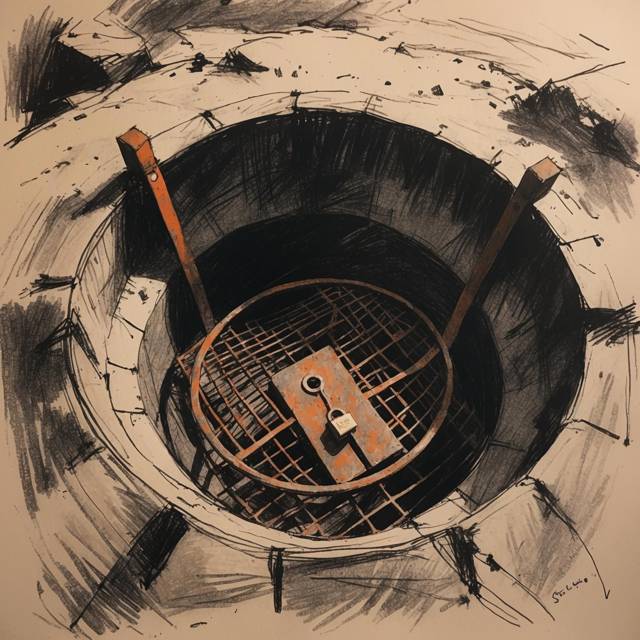 Я сидел на дне глубокой ямы, диаметр которой едва превышал метр. Стены были выложены из грубого камня, холодного и влажного на ощупь. Наверху, в нескольких метрах от меня, зияла металлическая решётка, через которую пробивался тусклый свет. Решётка была закрыта на массивный замок, ржавый и увесистый, словно специально подобранный, чтобы внушать безнадегу и отчаяние.