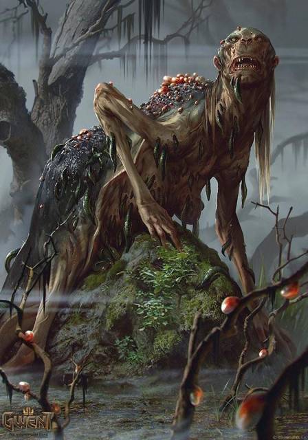 Взгляд мага остановился на странном существе, доселе невиданном в этих местах. Оно сидело на торчащем из водной глади камне. Его спину покрывали жирные пиявки, гнойники и странные красные наросты, похожие на волдыри. Голова имела почти человеческую форму, за вычетом небольшой вытянутости. С ушей свисало несколько прядей тины. Руки пятипалые, с одним локтевым суставом, однако тоже неестественно длинные. Вместо ног длинное мягкое брюхо и набор щупалец.