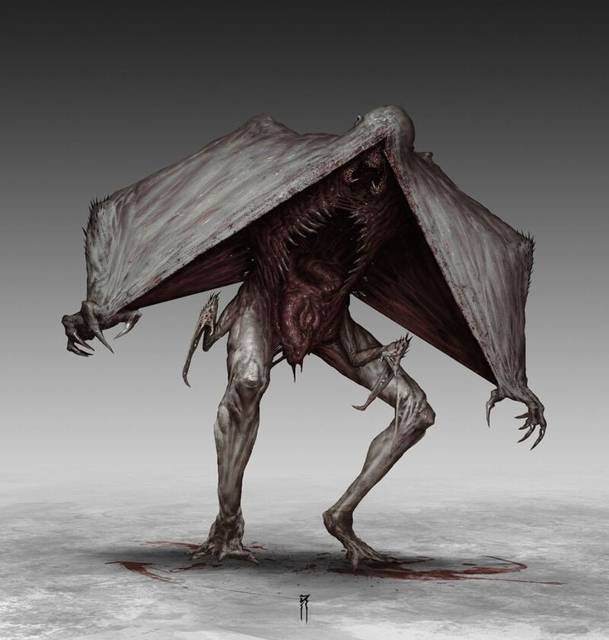 Добравшись до тела, он привстал на ногах, разводя руки в стороны. За ними зонтом потянулась натянутая серая кожа. Она снялась почти со всего тела, обнажив ранее сокрытое. Нутро существа, его грудная клетка и торс, с человеческими ничего общего не имели. Конструкция из мышц, длинных игольчатых зубов, костей и отростков разверзлась подобно пасти. Внутри отсутствовала пищеварительная система, как и нижняя челюсть, замененная мандибулами. А оставшиеся еще органы покрывали пленки, предотвращающие повреждения и соприкосновение с тем, что обычно попадало внутрь.