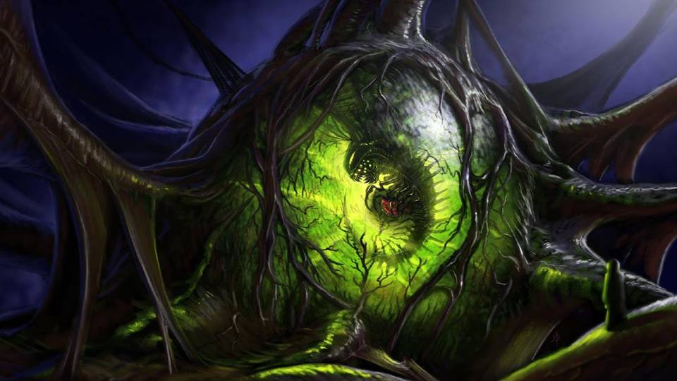 Шлепая ногами и руками по слизистой плоти, нар’глод петлял по тоннелям, останавливался, разворачивался и снова бежал, выбирая новое направление Его метания продлились долго, пока, наконец, ему не повезло. Ход вывел из лабиринта в пещеру, полностью заполненную пульсирующей плотью. Со стен и потолка спадало множество толстых жгутов, часть из которых была больше самого существа. Они крепились к яйцу, чья прозрачная оболочка изнутри горела ярким зеленым светом. Внутри него плавал зародыш.