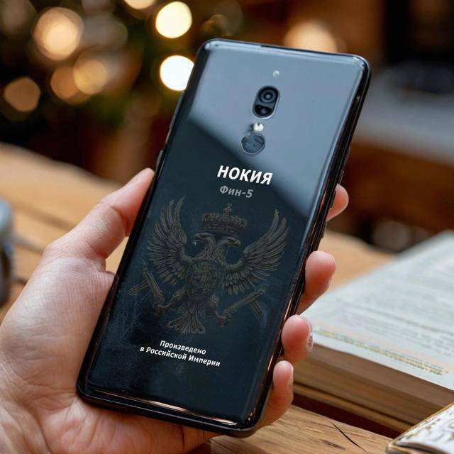 Вот те раз, а модель-то совсем другая… «НОКИЯ Фин 5», вот так, прямо кириллицей на задней крышке и написано. А ведь забавно! В жизни редко когда видел подпись которая не «Made in China», но тут аж «Сделано в Российской Империи».