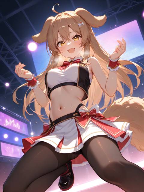 Ему соответствует как сценический наряд, так и наигранное поведение. Например, «милая подружка» по сценическому имени всего из двух букв: Ай. Настоящее я так и не запомнил, Дима его говорил… Она почти в прямом смысле собака. Дружелюбная аж до чёртиков. Обниматься, целоваться, умолять погладить…