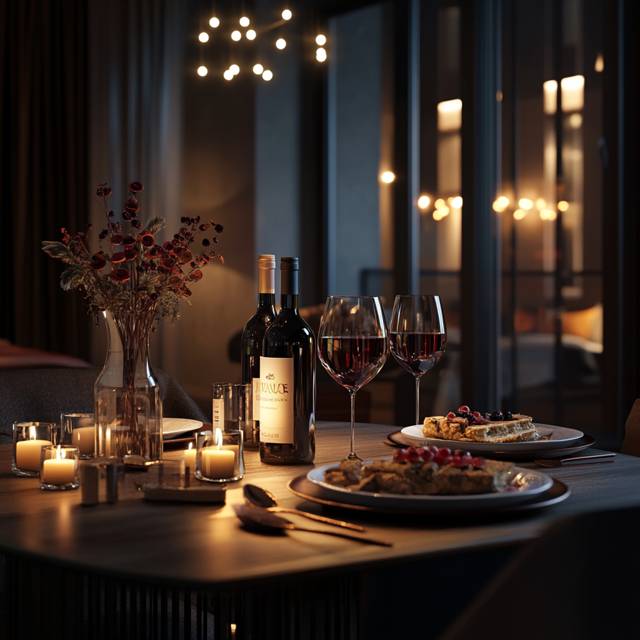 [Войдя, она с удивлением осмотрела романтическую обстановку. Особенно ее поразил богато накрытый стол – она явно не ожидала таких кулинарных талантов.]