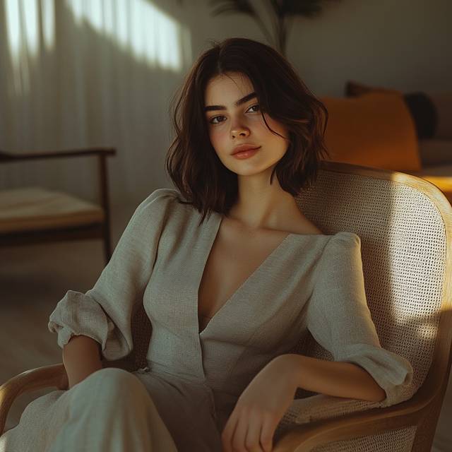 Ее наряд составлял яркий контраст с простым стилем Маши – длинное льняное платье, подчеркивающее талию, длинные рукава, открывающие лишь запястья с серебряным браслетом. Весь ее образ излучал естественную утонченность.