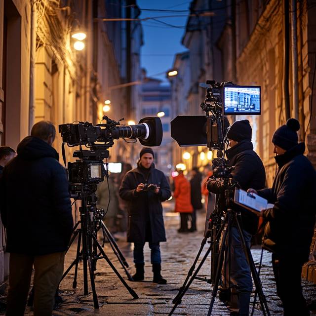 В здании у переулка пятеро человек прилипли к окну, наблюдая происходящее через камеру.