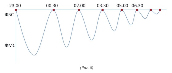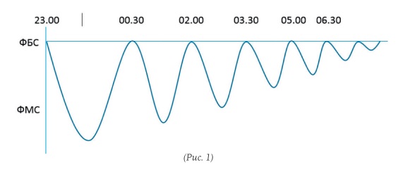 Когда мы засыпаем, – допустим, в 23 часа мы начали засыпать, – мы начинаем уходить глубоко в фазу бессознательного. Заныриваем мы туда примерно в течение 40–50 минут и после этого выныриваем. Все это длится полтора часа. И вот такие нырки происходят каждые полтора часа. Причем можно заметить, что нырки все менее и менее глубокие. К утру мы уже не ныряем в бессознательное, а находимся постоянно в фазе быстрого сна. Наш мозг, наше сознание находится в состоянии, где постоянно есть образы, в астральном теле.