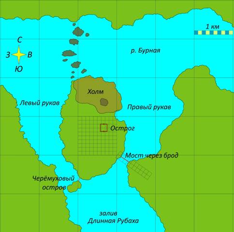 Вставлю для понимания карту. Для таких же внимательных, как я: шаг крупной клетки = 1 км, мелкой = 100 м. Маленькая чёрточка между нашим большим жилым островом и Черёмуховым островком – и есть первый сегмент будущего моста на запад. То есть, предполагалось, что мост обопрётся о Черёмуховый островок, по самому островку пройдёт обычная дорога, а дальше – второй кусок моста, до большого берега. И всё равно работа мне казалась настолько серьёзной, что было страшно.