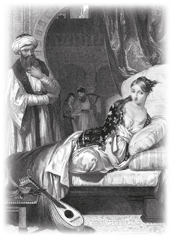 Во дворце царя некоторые окна выходили в сад; и в то время как царский брат смотрел в одно из них, дверь из дворца отворилась, и из нее вышло сначала двадцать рабынь, а потоми двадцать рабов-негров, вслед за ними вышла жена царя, замечательная необыкновенной красотой и грацией[10]10