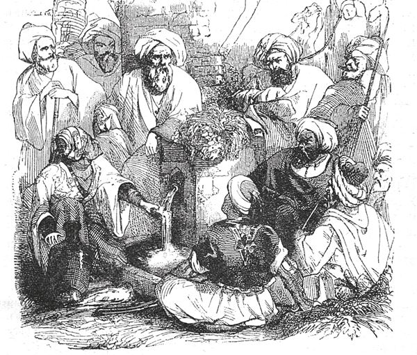 Тут я стал хорошо и есть, и пить, бросая деньги, вырученные за мои товары. В то время как я сидел однажды у дверей моего кааха, ко мне подошла девица в таком богатом платье, какого мне не случалось еще видеть, и я пригласить ее войти. Она, не колеблясь, тотчас же вошла; мне очень понравилась ее уступчивость, и я тотчас же запер за нами обоими дверь. Она откинула покрывало, сняла изар, и я нашел ее до такой степени красивой, что сердце мое затрепетало от любви; я тотчас же пошел и принес обед, состоявший из разного рода мяса, фруктов и всякого другого угощения; мы ели и забавлялись, а потом стали пить до тех пор, пока не опьянели и легли спать. Утром я подал ей десять червонцев, но она отказалась принять их и сказала: