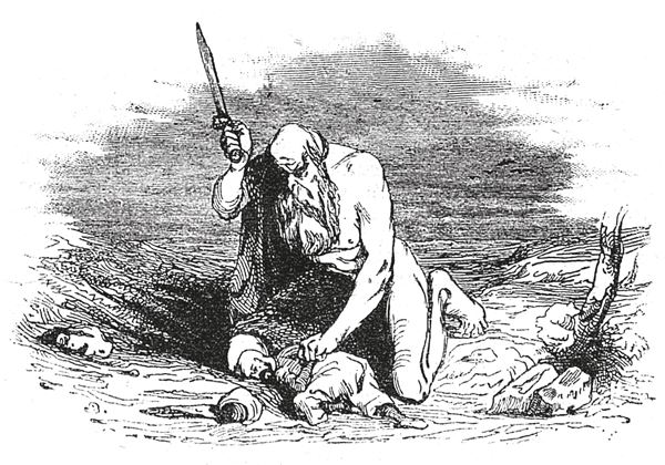 – Смерть твоя, – отвечал Шайтан, – неизбежна, так как ты убил моего сына. – И, говоря таким образом, он схватил его, бросил на землю и поднял руку, чтобы убить мечом.