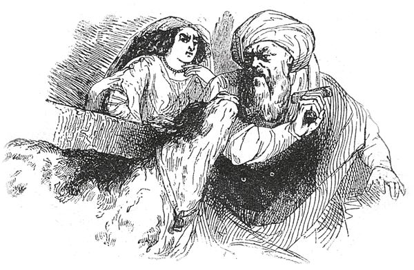 – О купец! У меня есть дочь, которая в юности выучилась колдовству от одной старухи из нашей родни; и вчера я привел теленка, что ты мне дал, к ней, и она, взглянув на него, закрыла себе лицо и заплакала, а потом засмеялась и сказала: «О, мой отец, неужели я так низко упала в твоем мнении, что ты приводишь ко мне посторонних мужчин?[22]22