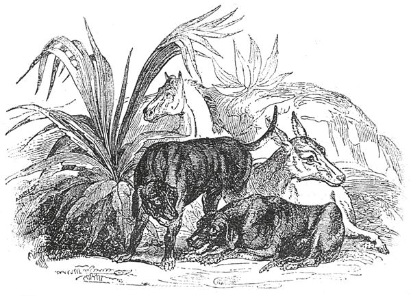 Расположившись подле него, они начали беседовать. А купец почти лишился чувств; его охватили страх, ужас, страшное горе и ужасная тревога. В то время как владетель лани сидел подле него, вдруг к ним подошел второй шейх, с двумя черными собаками и, поклонившись, спросил у них: «Зачем сидят они в таком месте, которое считается притоном Шайтана», и они рассказали ему всю историю с начала до конца.