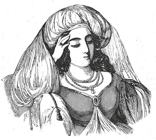 [Закрыть] высокая и стройная, с лицом, перед которым могло покраснеть даже солнце. Она походила на блестящую планету или на высокорожденную арабскую девушку. Эта третья молодая особа, поднявшись со своего ложа, легкой поступью вышла на середину гостиной, где уже стояли ее сестры, и сказала им: