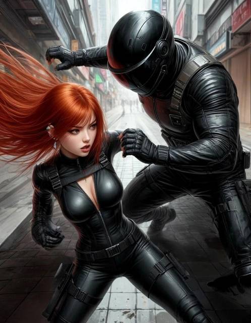 Его движения были скупыми и мощными. Он не тратил силы на попытки и промахи, а когда бил, старался делать это максимально быстро. Каждый такой удар, явно усиленный сервомоторами его доспеха был способен снести бетонную стену. Кулак просвистел в паре сантиметров от головы Аки. Он явно пытался предугадать ее траектории движений, отрезать, зажать в угол или как-то ограничить, но девушка всякий раз змеей, неуловимой тенью или дымом ускользала. В конечном итоге он сделал ошибку: попытавшись ее достать и открывшись,но когда он делал широкий размах, она сдвинулась в его слепую зону, нанося серию быстрых ударов по почкам, и добила жестким ударом в спину.
