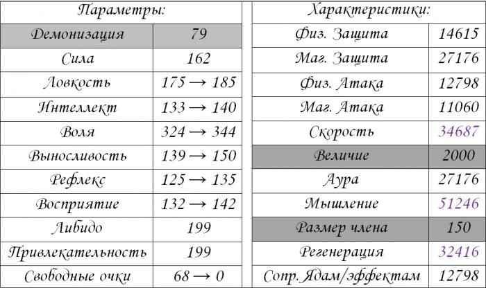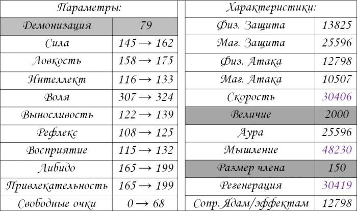 По той причине, что последние дни обошлись без дополнительных физических и ментальных нагрузок, прирост показателей получился только за счёт повышения уровней. Как результат, до нижних пределов А-ранга оставалось ещё достаточное количество параметров, но в целом, человеческая форма продолжала набирать устойчивость.