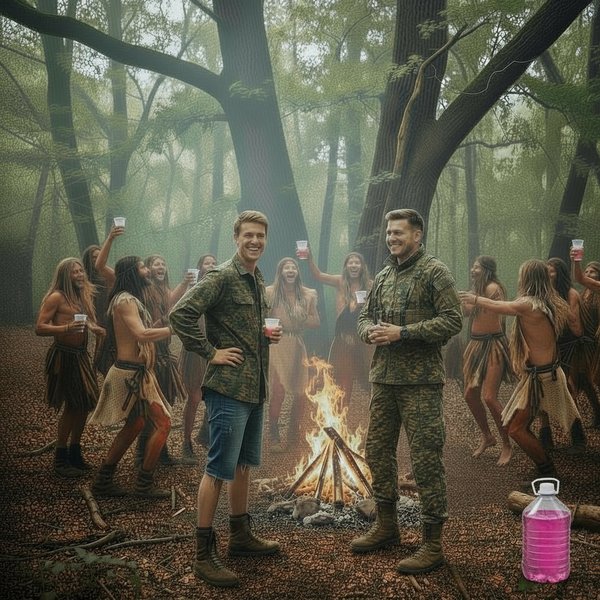 А я взял первую пятилитровую бутылку с моим «Эликсиром Шамана» и упаковку прозрачных стаканчиков. Вышел к людям. Старейшины проводили меня к костру.