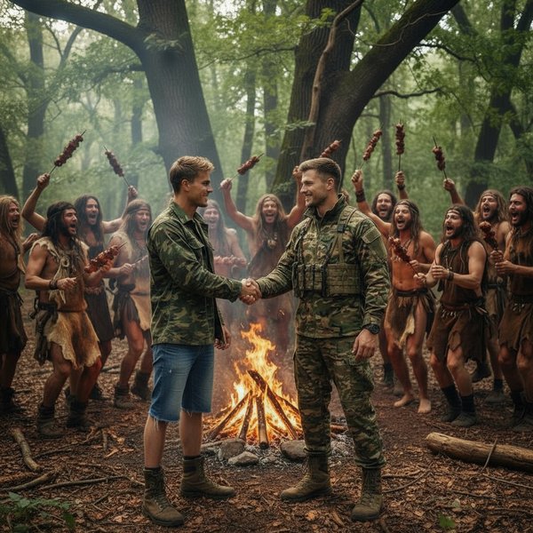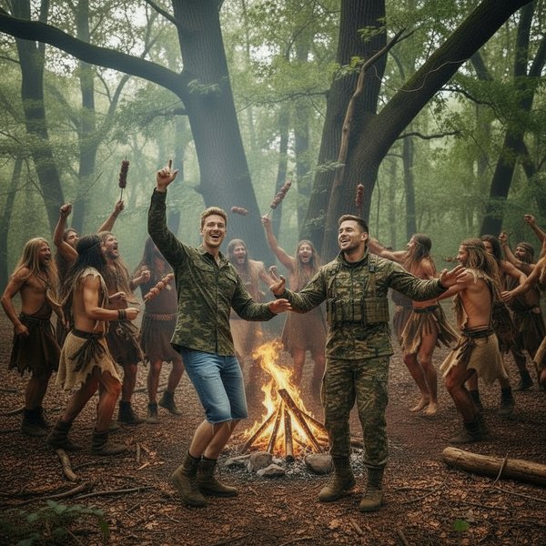 Баар поднял мачете над головой, его голос гремел: – «Я – Вождь! Я – Сын Вождя! Я поведу Племя «Оленя» к счастью, благополучию и вкусной еде! Со мной – Великий Шаман Ал! Мы будем сильны!»