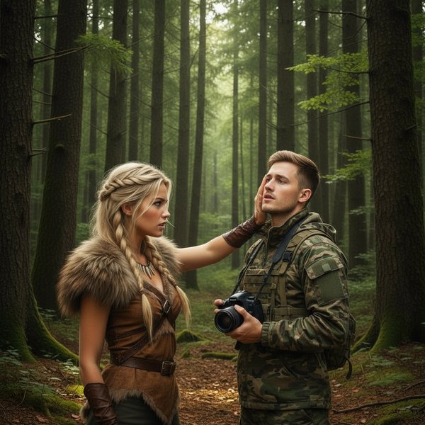 Ол фыркнула, резко развернулась – её силуэт мелькнул в тенях леса, точно лесная кошка, – и исчезла, оставив шлейф лёгкого аромата дикой мяты. «Уф, Заноза Вредная!» – проворчал я, всё ещё массируя щеку. Тут подошёл Баар, ухмыляясь во весь рот, явно насладившись спектаклем.