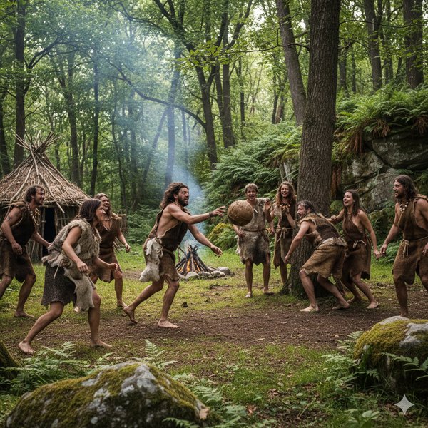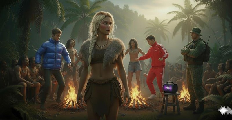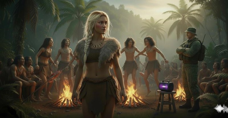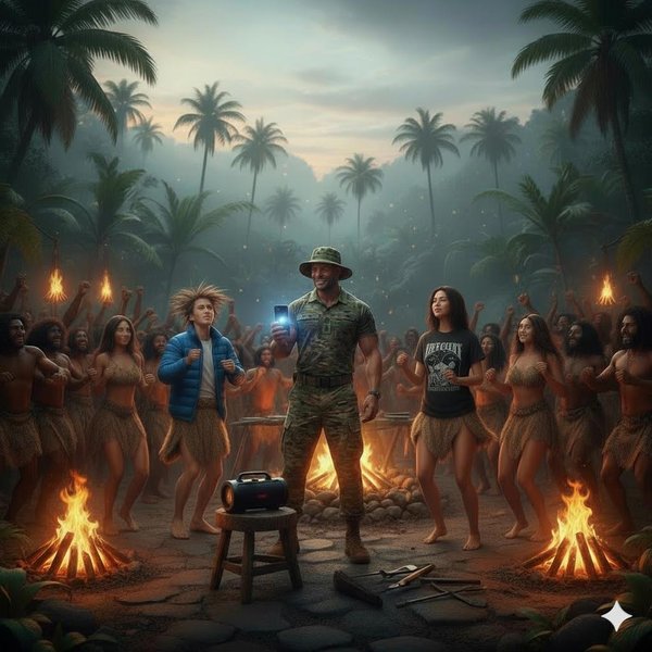 На звуки музыки в итоге подтянулось всё племя. Люди племени, очарованные неведомыми звуками, жарили мясо или рыбу на костре, не отрывая глаз от танцующих. Молодые девочки, одетые в короткие шкуры, присоединились к танцу, их движения были более грациозными, они кружились, притоптывали босыми ногами по земле, покачивая бедрами в такт музыке. Их смех и возгласы сливались с ритмами. Даже некоторые старейшины, с их морщинистыми лицами, одобрительно покачивали головами, а кое-кто даже слегка притоптывал ногой.