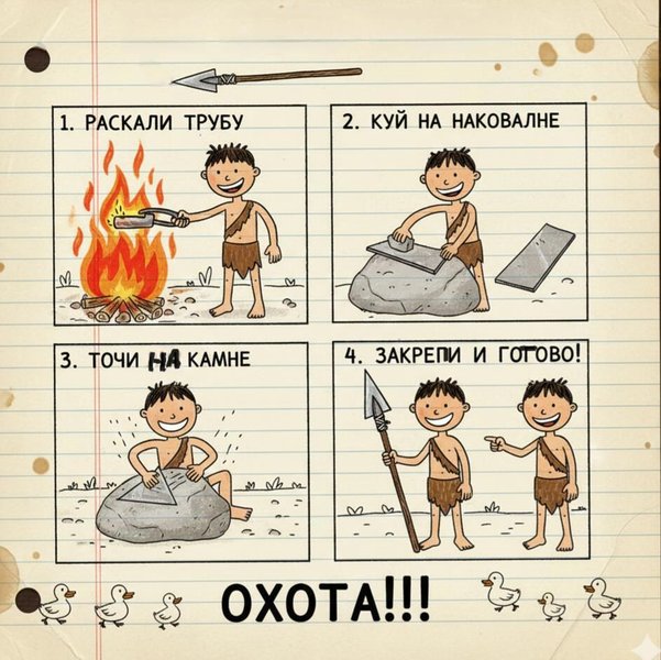 Я отправил, часть моего молодого отряда на охоту с рогатками за утками и на рыбалку, а наиболее крепких ребят оставил с собой и объяснил задачу. Даже показал в картинках, что будем делать. Мои картинки, конечно могут и запутать, но как я уже выяснил раньше, даже эти каракули действуют на молодые умы ребят из каменного века, как инструкция «Икеи» по сборке тумбочки. И главное, смотря на мои каракули они сразу понимали, что нужно делать. А вот это настоящая фантастика или колдовство Шамана?