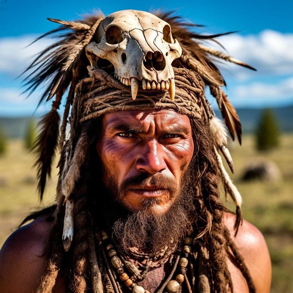 Пока я, собравшись с духом, готовился к лечению раненых охотников, из толпы, которая с ужасом наблюдала за происходящим, вышел старик. На голове у него был надет череп неизвестного животного, а сам он был увешан всякими погремушками и амулетиками. Он начал прыгать вокруг раненых, истошно выкрикивая: