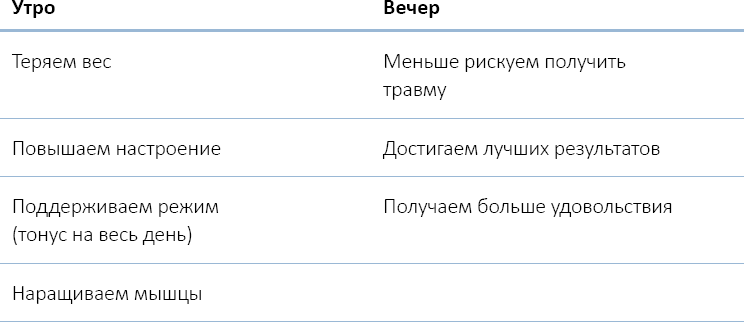 Зарядку следует делать утром или вечером в зависимости от цели.