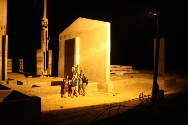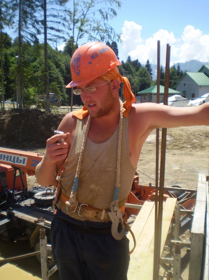 Был на стройке менее приятный случай; в один из дней мы заливали бетон, а именно подпорную стену, поэтому пришлось вечерить на стройке. Конечно, к 9 часам ушел последний начальник со стройки и тут начался экшн; наш крановщик умудрился напиться до состояния невменяемости, приехал бетон, а крановщик ни петь ни рисовать. За кран сел водитель миксера, состояние которого было недалеко от крановщика. Поднимаем мы значит бадью с бетоном, на которой еще был и ее оператор, раз подаем бадью к месту заливки, два, три, в общем залили кое как первую, а их 4-ре было в миксере. Заполнили 20-ую и на подъем. В какой-то момент стрела крана начинает крутиться по кругу, причем с постоянно увеличивающейся скоростью, оператор кричит благим матом, конечно, ему страшно он сейчас как снаряд пращи готовый вот, вот улететь вдаль. Тут наш звеневой резко спрыгивает со стены и одним быстрым движением оказывается на платформе крана, открывается дверь кабины, а от туда вываливается спящий «водитель-крановщик». Отнесли его в цех, там и положили спать рядом с крановщиком. Тогда уже за кран сел на звеньевой, и мы с горем пополам залили остатки бетона. В 4 часа ночи были уже в общежитии.