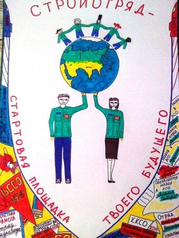 Где-то в середине марта захожу в филиал штаба СФУ находящийся в политехе и вижу такую картину: Кузьма и Лёха буквально лежат и выводят на листочке какие-то каракули, которые постепенно вырисовываются в картину. На мой вопрос: «Что это за х**ня?», последовал ответ, что это агитационный плакат, который соответственно своему названию агитирует к поступлению в отряд. На плакате были нарисованы баба и мужик, которые стоят и держат планету с разными народностями. Так как этот плакат был стройотрядовский, то там был пафосный слоган и все в бойцовках. Слева и справа были различные вымпелы, «кирпичи», грамоты и призывы к вступлению в отряд, а слева и справа было всё это обрамлено взлетающими ракетами. В том году был 50 год, как Юрий Гагарин отправился в космос, по этой причине плакат должен был воспринят, как «вай вай, что за красота, прям рахат лукум моего сердца». Пацаны постарались, но у меня восторга особого не было, потому что это смотрелось наивно и по-детски, короче, как сказал бы Тёма: «Шляпа полная».