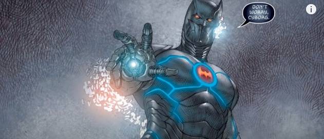 Лучи зеленой энергии ударили сверху неба. Сначала герои порадовались, что это прилетел Зелёный Фонарь, но мы увидели совершенно другого человека. Это был Бэтмен, вокруг которого пылала зеленая энергия, а на руке светилось кольцо зелёных фонарей. Об этом свидетельствовала и эмблема на груди поверх летучей мыши.