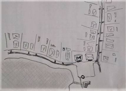 Дорога, проходящая через деревню, одна. С одной стороны от магазина, она идет вдоль озера, и дома там стоят только с одной стороны. В другую сторону от магазина, дорога уходит в поля, дома там стоят с двух сторон от дороги.