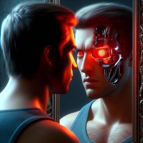 Он как-то ускоренно заморгал, как будто в глаз попала какая–то крошка. И пока я поворачивался, чтобы мочить киберов… он схватился за голову, закрыл глаз, из под руки вырвалась искра и он выбежал из камеры. Остановился только в соседней камере перед зеркалом. Отнял руку от лица и уставился в отражение – косметическая оболочка глаза прогорела и из–под нее выглядывал фотоэлемент горящий красным…