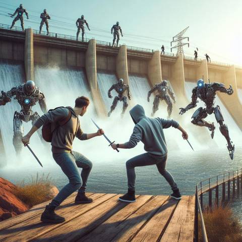 Противники бросились друг на друга, Эйт показывал чудеса изворотливости. При этом нанося точные и мощные удары. Кулаки соприкоснулись, искусственная кожа распотрошилась. Хотел того или нет Голиаф, но бой постепенно перемещался на бетонный обрыв.