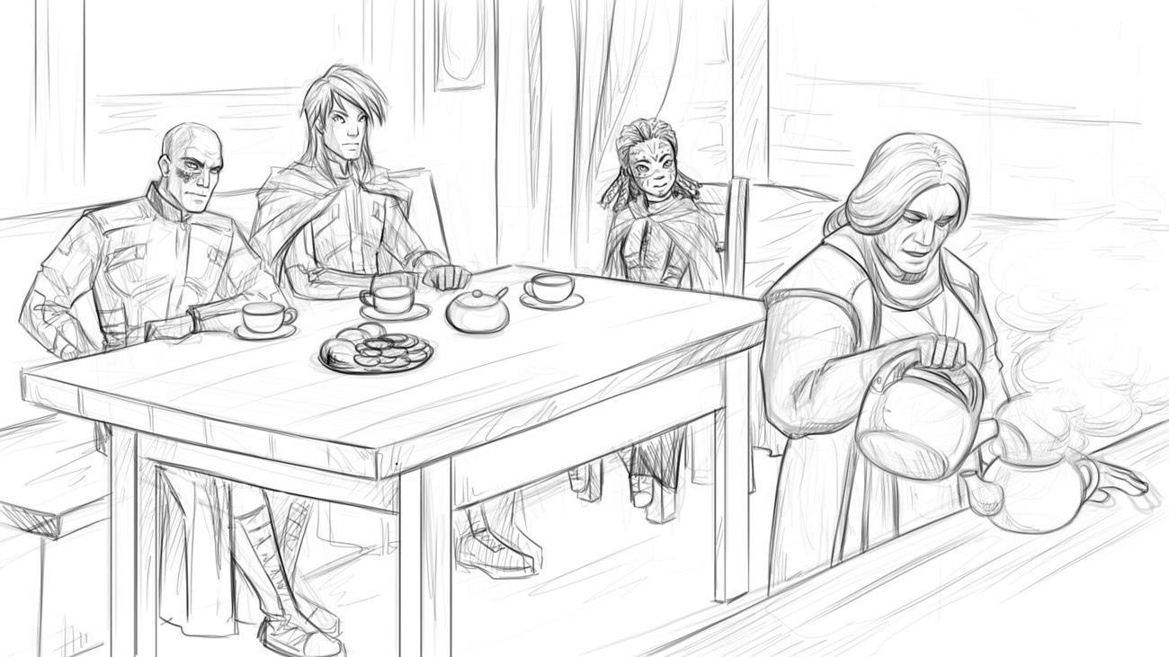 В небольшой жилой комнатке, совмещавшей и кухню, и спальню, уютно шумел закипающий чайник. Несколько сбитые с толку аколиты сидели за массивным деревянным столом, а старушка, под неспешную речь, деловито копошилась с заварником и чашками.
