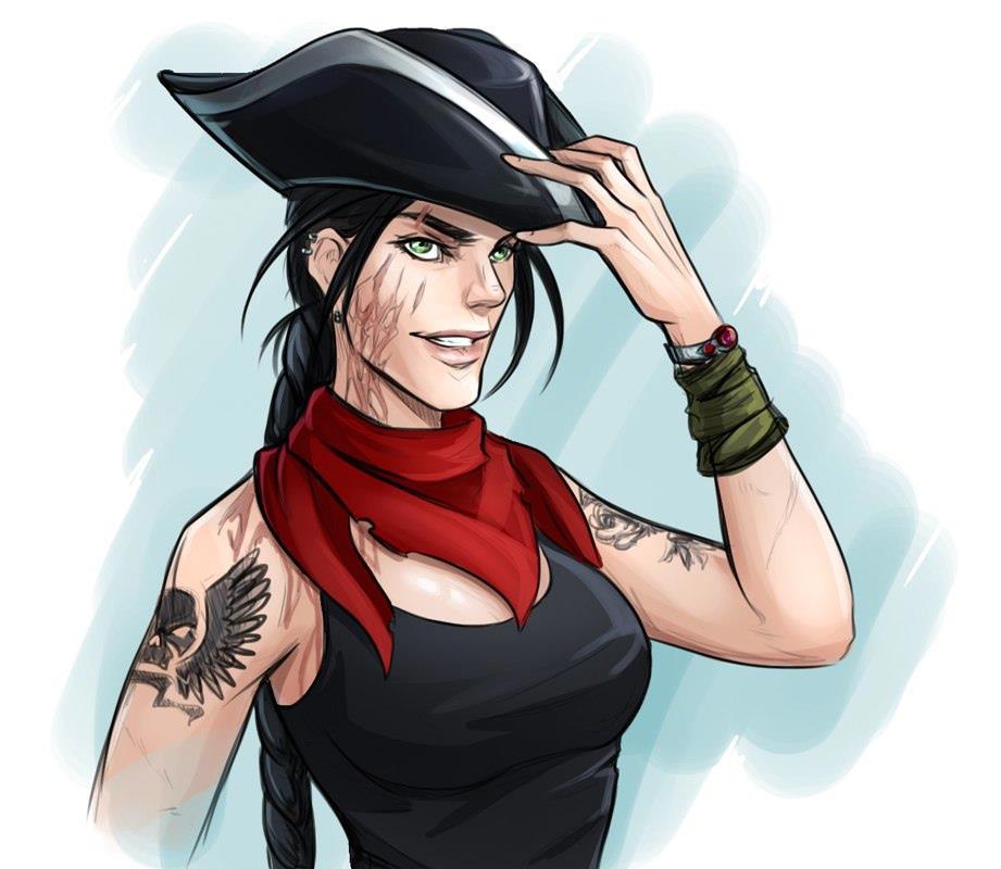 Энергичные шаги за дверью, в едва успевшие раскрыться створки бодро ворвалась крепкая, стройная дама и расположившись по стойке «вольно», на гвардейский манер, прожгла каждого присутствующего ярко – зеленым взглядом из-под черной треуголки. Ее длинная, черная коса жила кажется своей жизнью, как будто хвост крупной кошки, а массивный шрам на правой щеке, уходящий вниз на шею и далее за ворот и множество колец в ушах, создавали образ практически пиратский.
