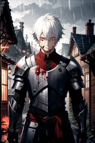 Серая броня, серый плащ, красная рубашки и… алые глаза, которые смотрят прямо на меня.