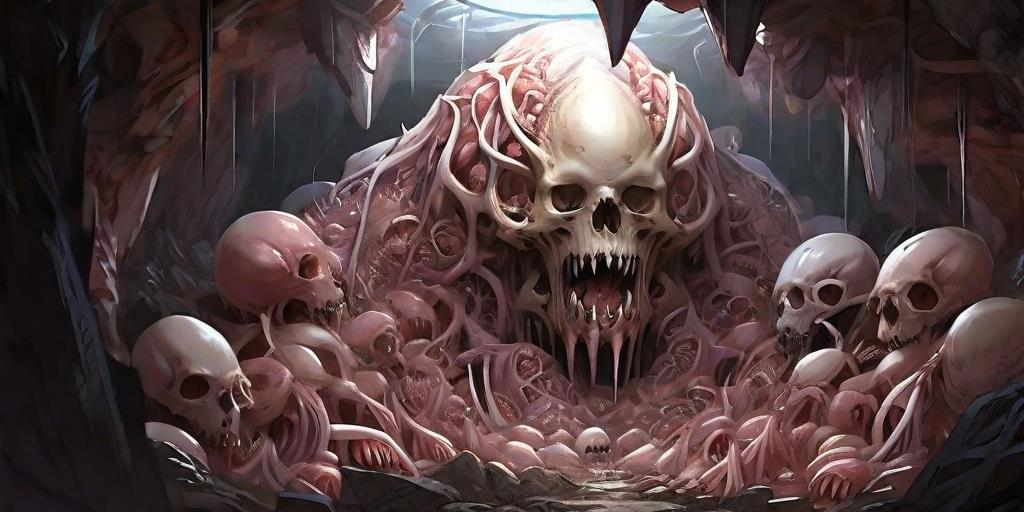 Он стал бросаться к стенам и пытаться пробиться через них, но ничего не выходило, так как эта плоть была очень прочна и его черный клинок не мог даже поцарапать ее.