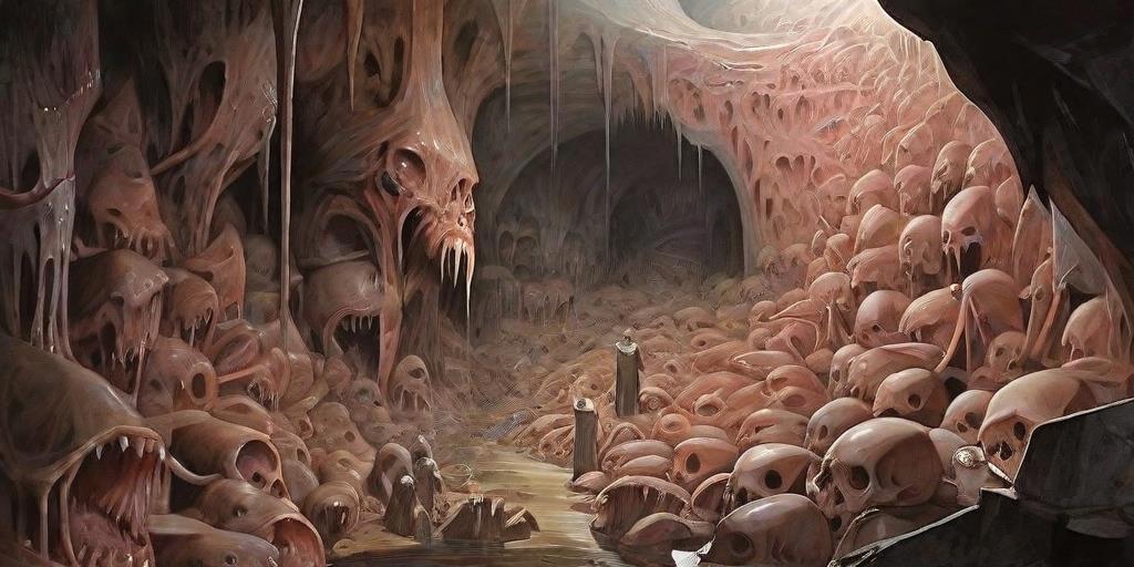 Гуманоидка понесла меня по довольно-таки жутковатому строению, наверное... ну или скорее даже пещере из плоти и костей, покрытых какой-то противной слизью...