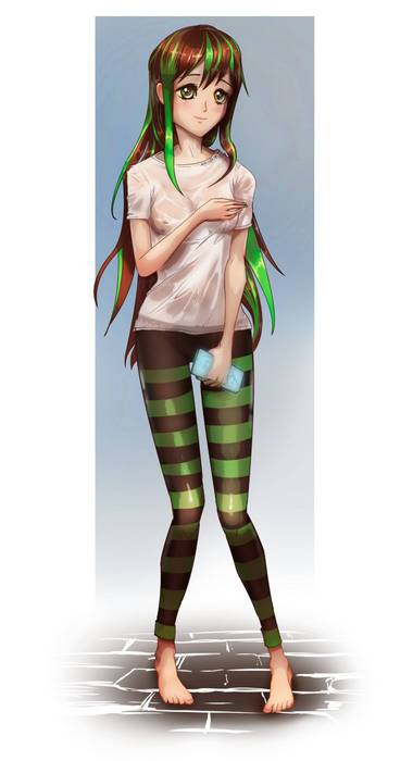Ее зеленые и темные пряди волос чуть щекотали живот и ноги парня… Девушка медленно погрузила член Алекса в ротик…