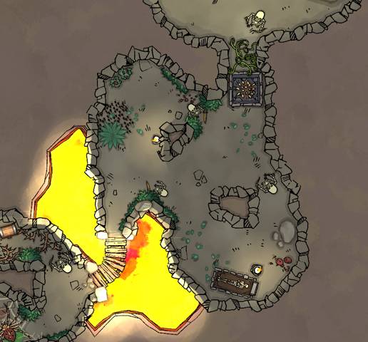 Новая комната и лавовое озеро.