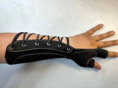 Я нашел ее и сразу надел. Крага идеально сочеталась по цвету с моими перчатками на скорость стрельбы. Даже мой плащ не выдерживает ударов тетивы, он потихоньку начал изменять цвет и рассыпаться на предплечье, куда постоянно хлестает тетива.