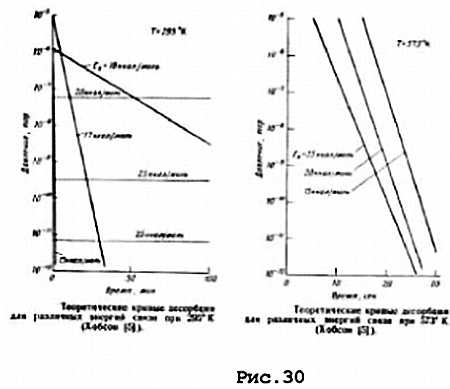 Вся колба и арматура должна быть прогрета при непрерывной откачке или промывке инертным газом. Температуру прогрева выбирают возможно большей, помня, что десорбция и диффузия примесей экспоненциально зависят от температуры (см. рис. 30 [из кн. Э.Тренделенбурга «Сверхвысокий вакуум»]). Прогрев позволяет удалить основное количество загрязнений даже при откачке форвакуумным насосом. Гораздо лучше откачать лампу до давления в одну десятую миллиметра ртутного столба при прогреве до 300°, чем откачать непрогретую до десять в минус седьмой. При невозможности прогрева отдельных деталей до достаточной температуры (например, полого катода из кадмия, который выше двухсот градусов начинает возгоняться) промывают лампу газом и увеличивают время откачки.