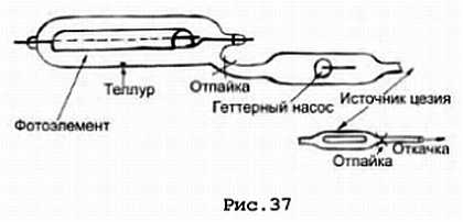 Так же делается фотоэлемент TeRb2 и ТеК2. Эти металлы перегоняются при температуре, несколько более высокой, чем для цезия. При работе с калием следует вместо повышения температуры увеличить продолжительность обработки, так как калий может ухудшить прозрачность стекла. Подробности и способ изготовления других фотокатодов можно прочитать в книге Соммера (см. список литературы).