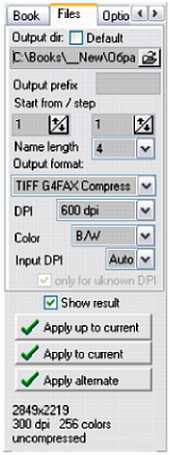 b) Выбираем путь для вывода результатов (закладка Files), тут же можно назначить способ нумерации выходных файлов, и что очень важно, назначить выходное разрешение 600 dpi.