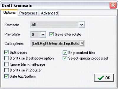 Options 2 пропускаем. В принципе, перед Draft kromsate на этой вкладке можно отрегулировать чувствительность, чтобы резаки не обрезали номера страниц при предварительном кромсании.