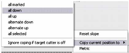 Оптимально это делается так: левая рука отвечает за листание – кнопки q и w, правая за мышь, которой мы передвигаем, если надо резаки. Если Вы уверены, что для части страниц положение резака будет одинаково, то Вы можете скопировать их положение, нажав правую кнопку мыши на резаке, выберите нужную опцию (Copy current position to).