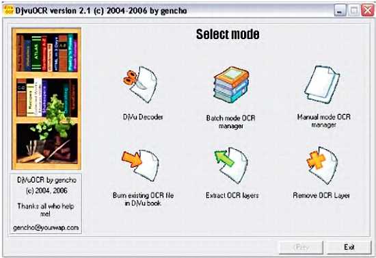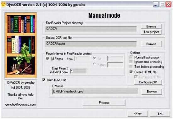 Для добавления распознанного текстового слоя в djvu книгу потребуется две программы. Первая это FineReader 7.0 или 8.0 версии. Вторая программа, это небольшая утилита DjvuOCR 2.1 от болгарского камрада Gencho.