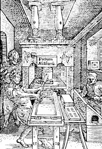 Печатный стан. Гравюра из книги В. Цога, 1507 г.